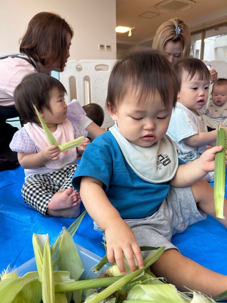 季節の食材に触れたり・野菜の皮をむいたりし、その日の食材を給食に用いることで、こども達が興味をもって楽しく食事ができるように目指しています。